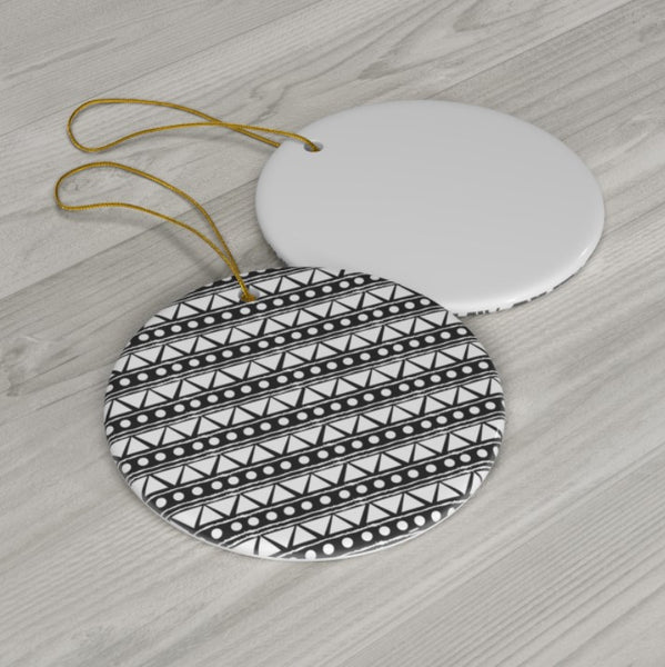 Make sure that your tree is the most stylish in town! Our wildly popular African mud cloth inspired Mali Sands, Black design graces this ceramic decoration. When kept well, this bauble can be the perfect heirloom to use year after year, generation after generation.
