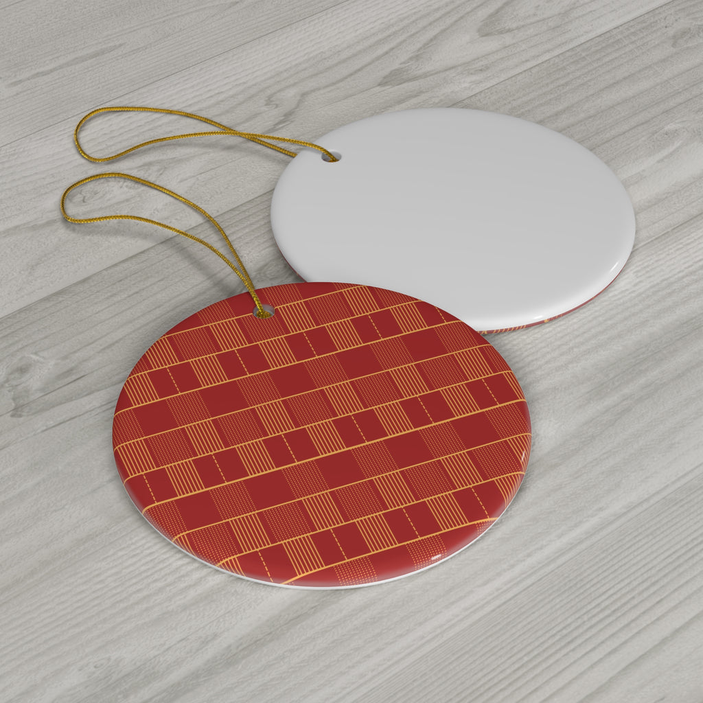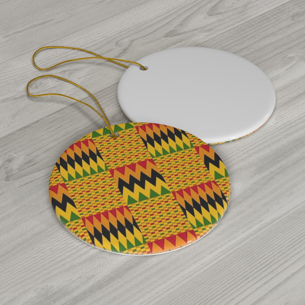 Round Ceramic Ornament - Kente Gold | Decorative Tree Bauble